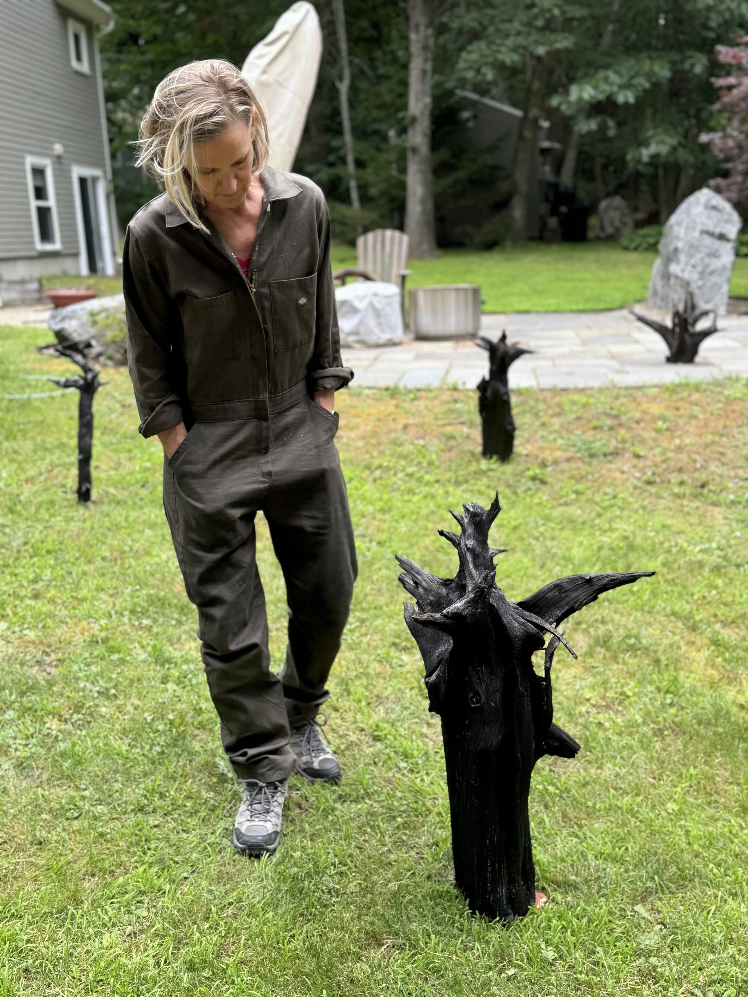 Pam Kainz is an artist based in Wayland, Massachusetts, whose practice is shaped by her background in neuroscience. Guided by curiosity and experimentation, she explores material transformation as both process and metaphor. For over a decade, this theme has remained central to her work. In her current series of abstract sculptures and paintings, Kainz uses fire torches to alter wood and other surfaces, allowing elemental forces to leave their mark. Rather than depict transformation, her work embodies it—each piece a quiet record of change, evoking the raw beauty found in moments of metamorphosis.