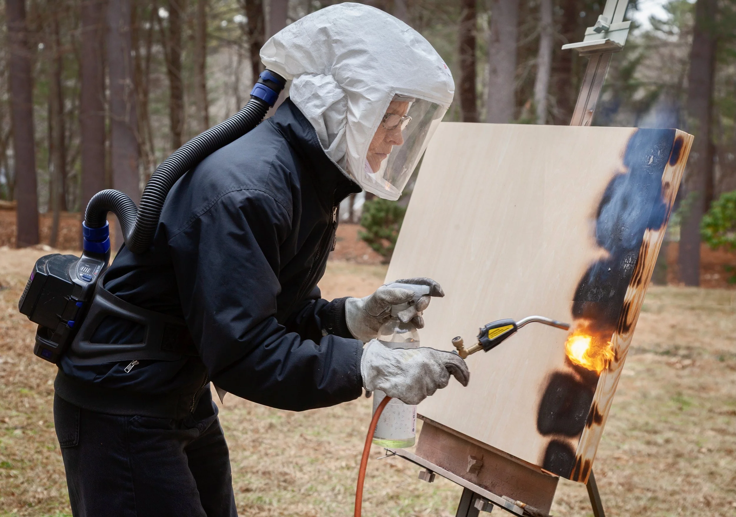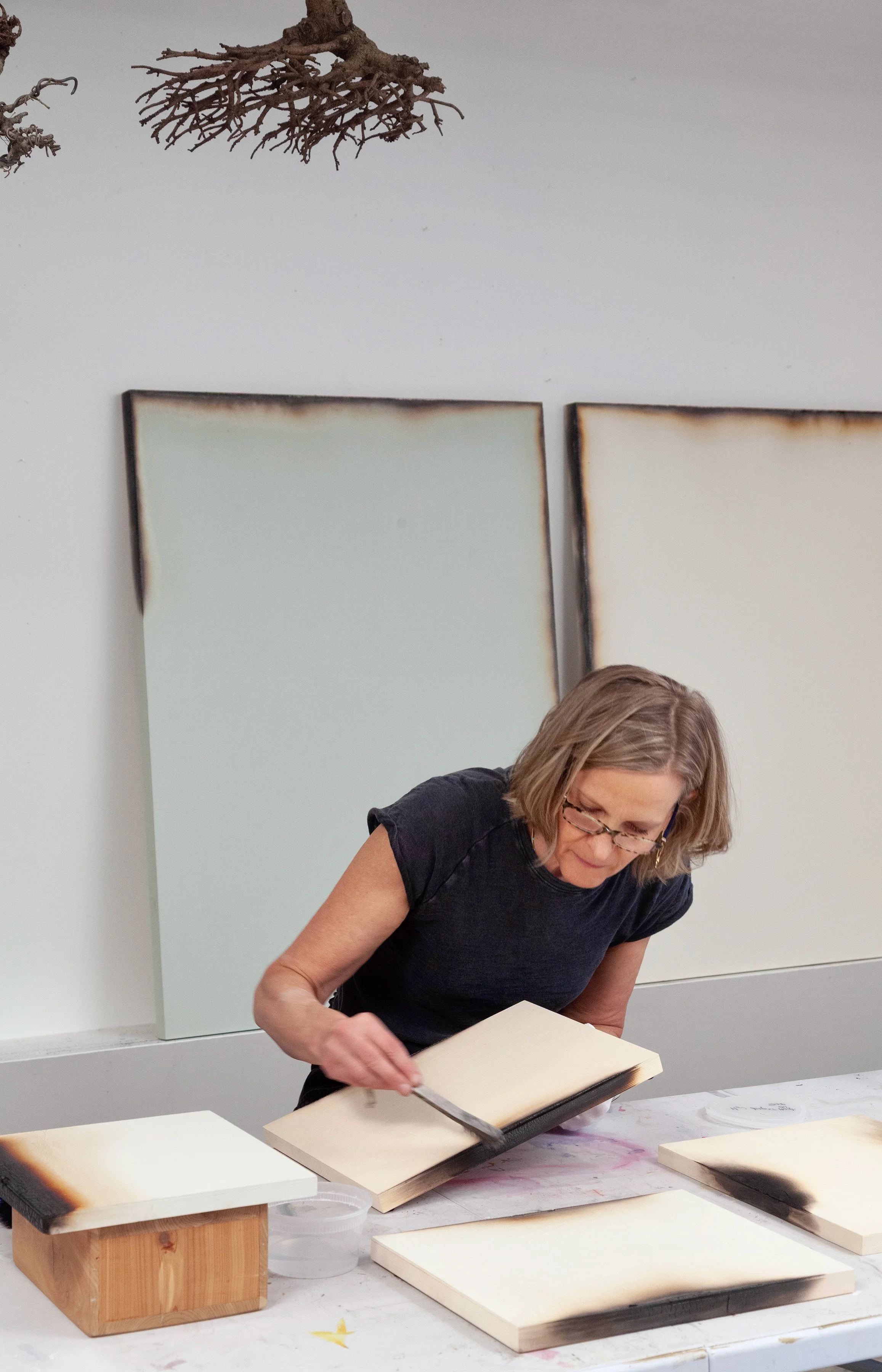 I create nonrepresentational sculptural works that explore mark-making on wood through the act of burning. My process is one of attention and restraint—I work with what the wood offers, letting its inherent qualities shape the outcome. The torch becomes a drawing tool, revealing rather than imposing form.